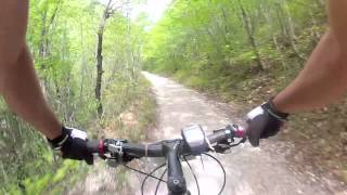 Gomme consigliate Per chi non vuole rischiare forature e vuole il massimo delle prestazioni è preferibile l'uso di un battistrada pronunciato soprattutto all'anteriore (visto la particolarità e lo stato attuale delle discese). Gomme robuste, non molto leggere!. Tipo di bicicletta Su questo percorso, visto che negli ultimi anni il fondo ha numerosi tratti duri con roccia anche scalettata, sicuramente una moderna full 29 da marathon si presta bene anche se la bici front 29 potrebbe dare dei vantaggi sui lunghi tratti più scorrevoli. Segnaletica Frecce nere su sfondo giallo unite a cartelli segnaletici (tipo quelli stradali) di tratti particolari e segnalazione dei tratti pericolosi di discesa con frecce verso il basso.