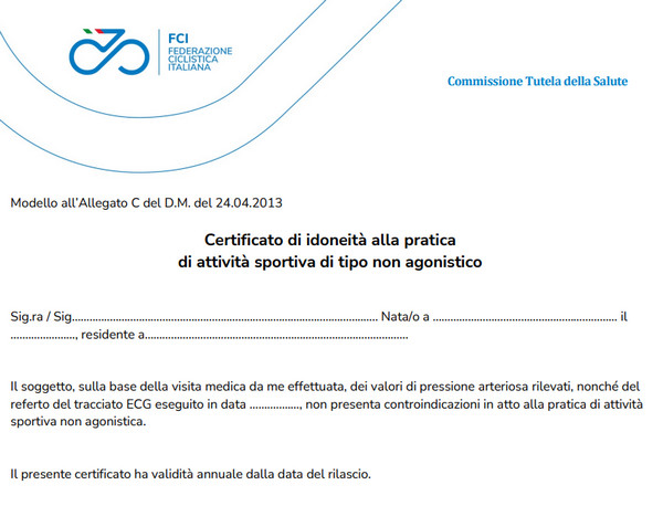 ALLEGATO C PER CERTIFICATO MEDICO non agonistico (per tessere B da Cicloturista il Certificato medico non agonistico può essere fatto dal centro di Medicina Sportiva oppure dal medico curante ed è in questo caso che serve l'allegato C su cui il medico curante compilerà le varie voci a meno che non abbia già dei prospetti pronti che riportino le stesse diciture dell'allegato C) (clikkare sulla foto per scaricare pdf)