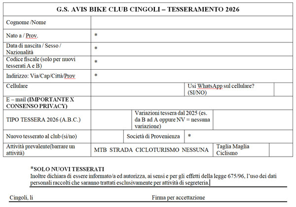 MODULO DATI PER TESSERAMENTO clikkare qui per versione doc modificabile a pc