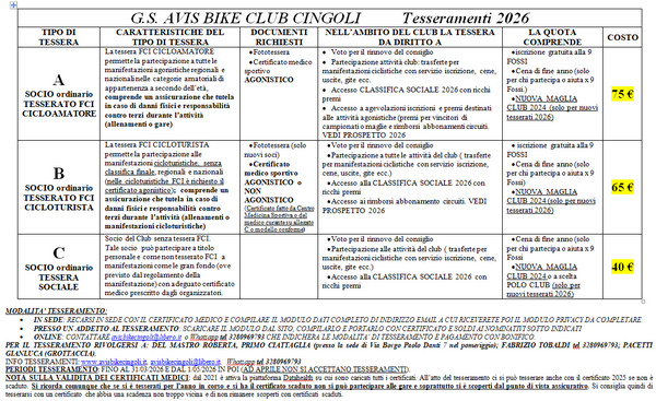 TESSERAMENTO 2026 TESSERAMENTO: PROSPETTO COSTI ED INFO GENERALI (clikkare sulla foto per scaricare)